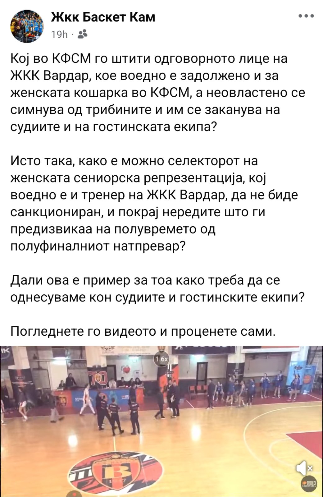 Druga utakmica polufinalne serije Prve ženske lige Sjeverne Makedonije između ŽKK Vardar i KK Kriva Palanka ostala je u sjenki teškog incidenta i optužbi za fizički napad, prijetnje i neregularnost takmičenja.