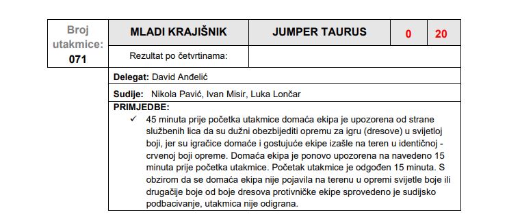U biltenu Košarkaškog saveza BiH službeno je obrazloženo što je banjalučki Mladi Krajišnik izgubio od Jumpera sa 0:20.