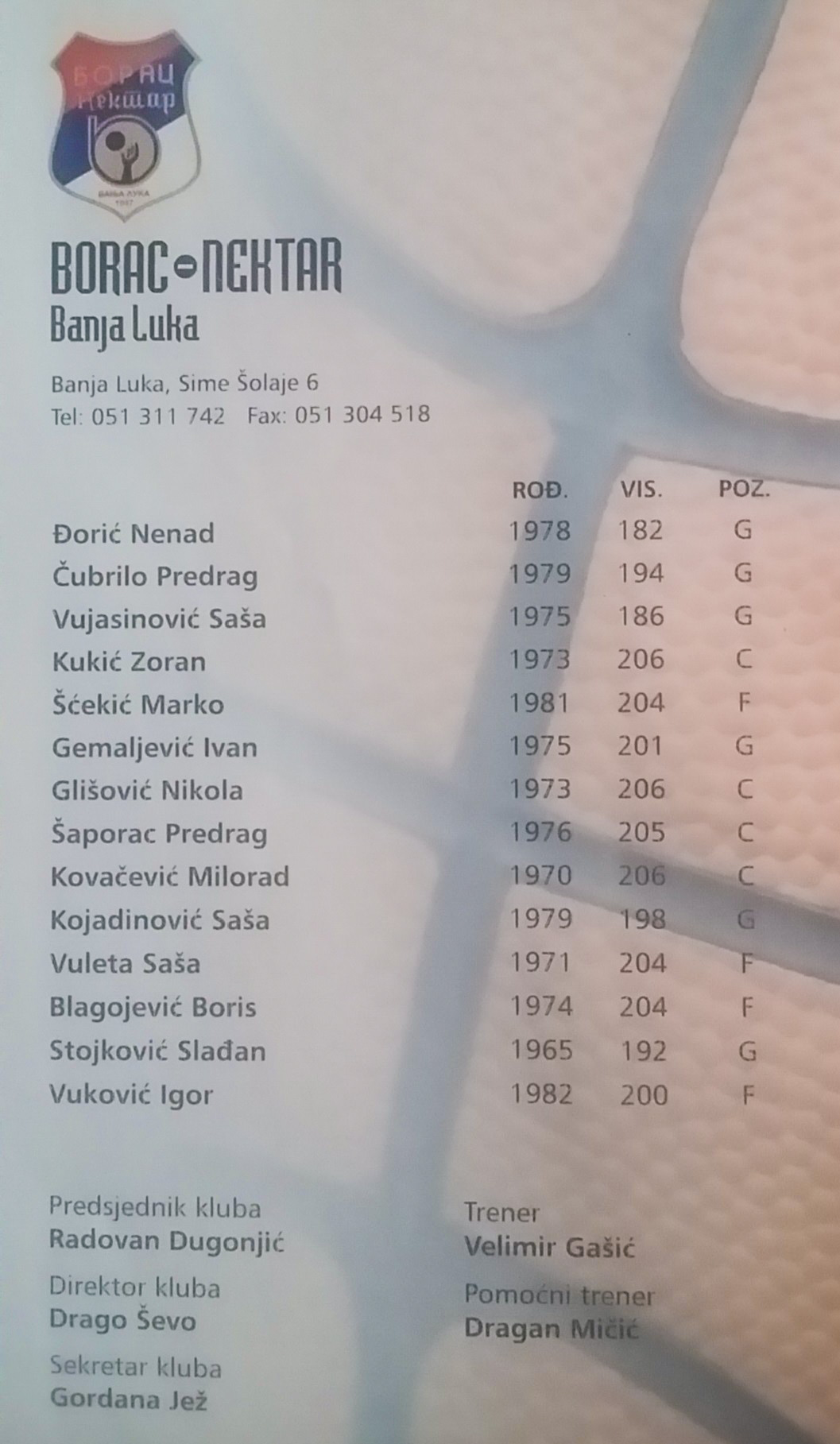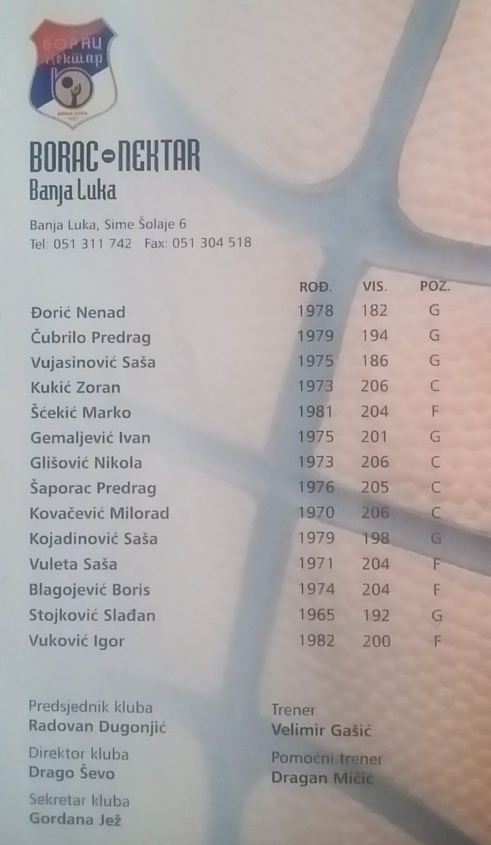 HomeVremeplovPredstavljamo učesnike Ožujsko BHbasket lige 2001: Borac Nektar