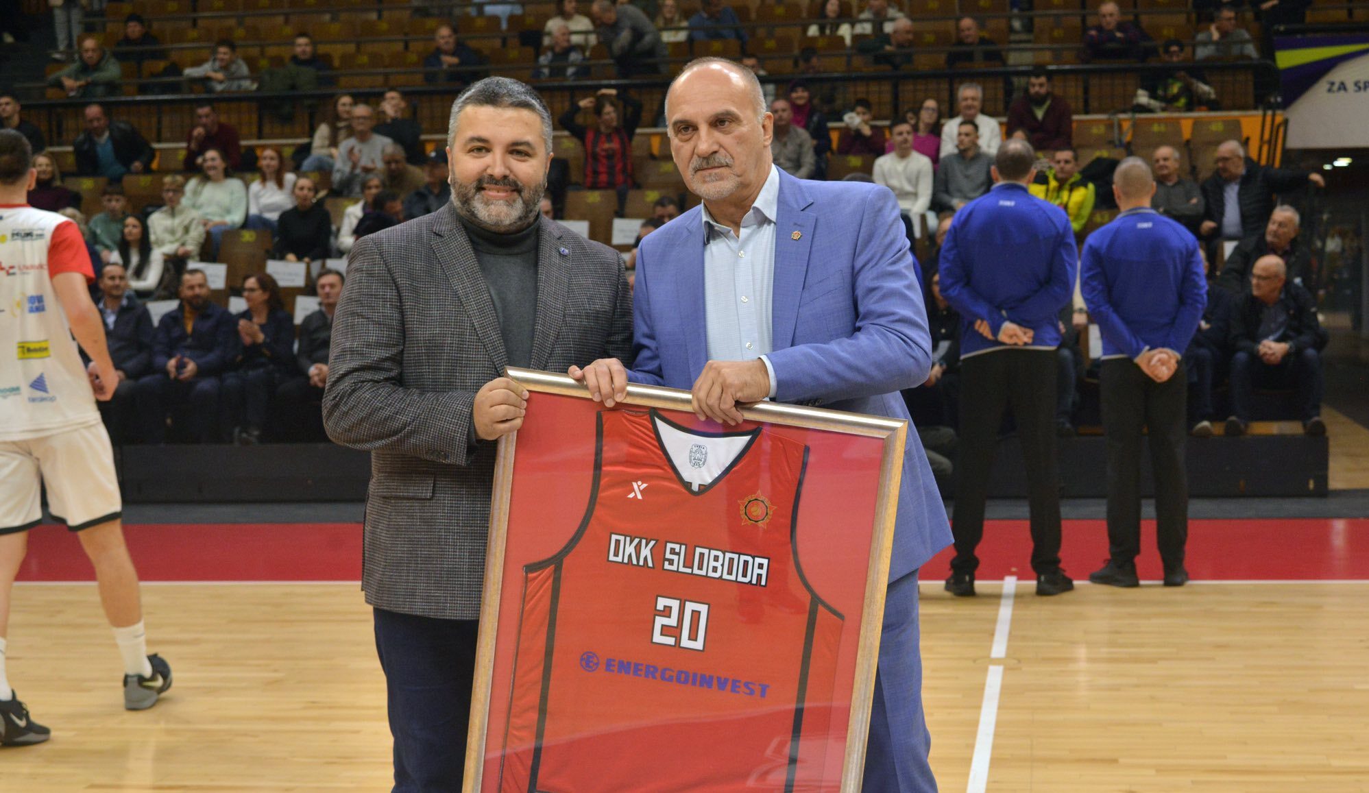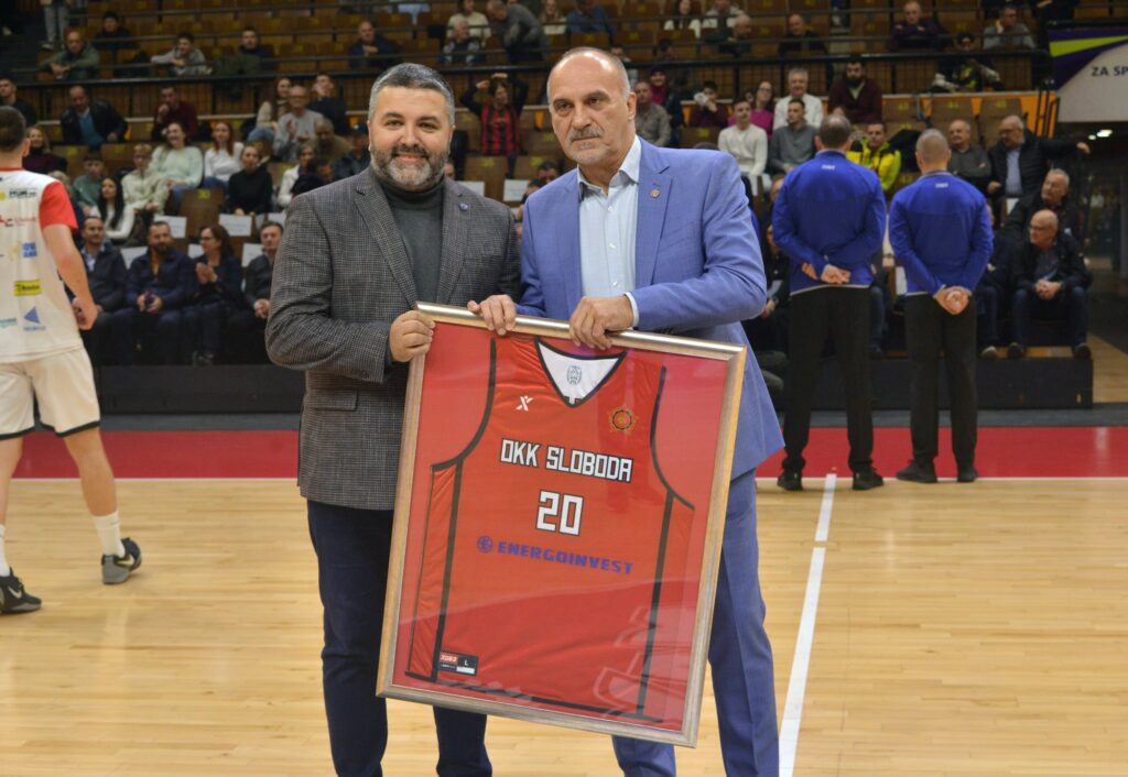 Predsjednik OKK Sloboda, Aid Berbić, uručio je posebno dizajniran dres Slobode sa brojem 20 i nazivom ugledne bh. kompanije Energoinvest, u znak zahvalnosti za podršku i partnerstvo.